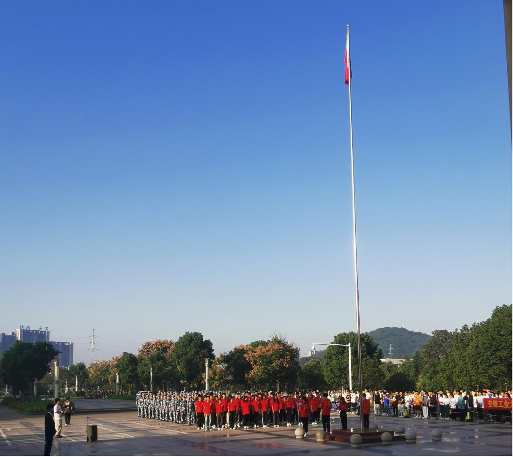 为热烈庆祝中华人民共和国成立72周年,10月1日上午,学校在秀山校区主教学楼广场举行升国旗仪式。437ccm必赢国际版本科生第二党支部组织部分假期留校的学生党员参加了升国旗仪式。