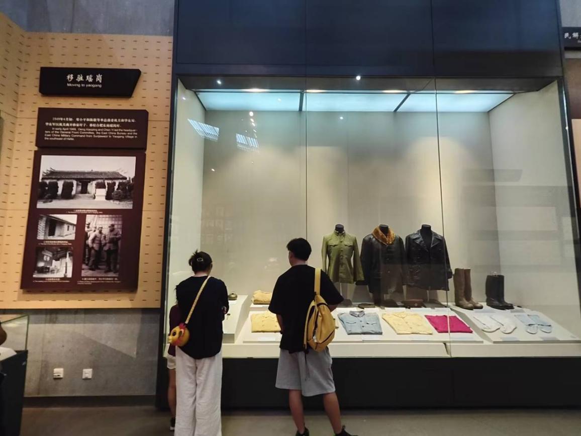 图为团队成员追忆渡江战役中移驻瑶岗时期的红军遗物