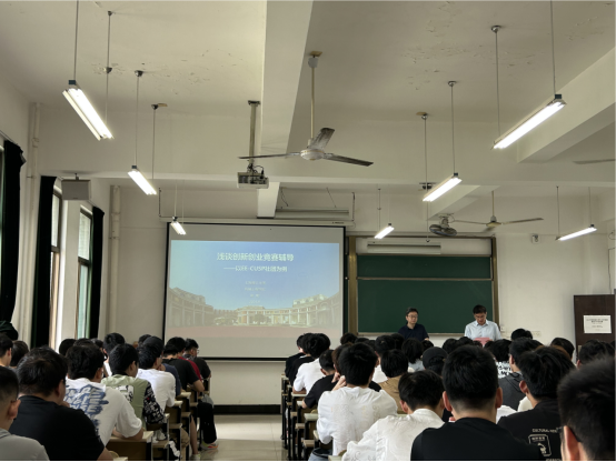讲座开始前,院长刘庆运向同学们介绍了夏鲲教授多年来在指导学生创新创业工作上取得的成绩,夏鲲教授已经指导学生团队连续4年在A+类赛事“互联网+”大赛中取得国家级金奖的成绩,鼓励同学们一定要认真听讲,汲取养分,提升能力。之后,夏鲲教授以“互联网+”大赛为例,提出了指导参与学科竞赛的“12345”路线,即确立“本研一体化”的一个成体系的双创人才梯队培养模式,把握“以赛促学、以课促赛”的二个主要切入点,关注“指导老师、项目负责人、项目答辩人”三个关键人物,注重“浓厚的双创文化氛围、充分的资源配给、过硬的核心技术、稳定的参赛心态”四个备赛要点,给出“充分准备、过犹不及、尊重学生、向下倾斜、育人为本”的五点建议。讲座结束后,多位师生积极就如何指导、如何参赛与夏鲲教授进行了进一步的互动交流。