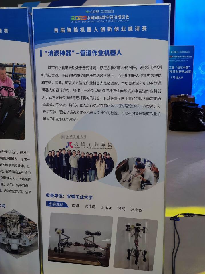 近日,2023中国国际数字经济博览会主办的全国首届智能机器人创新创业邀请赛在河北省石家庄市国际会展中心隆重举行,我校437ccm必赢国际版“清淤神器”团队在众多优秀参赛团队中胜出,荣获全国二等奖。