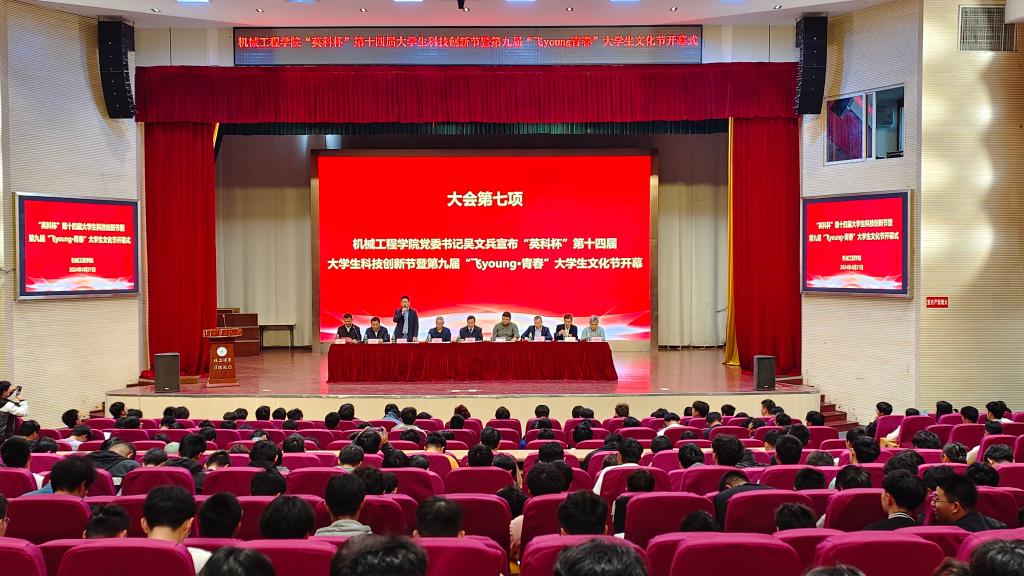 4月21日下午,437ccm必赢国际版“英科杯”第十四届大学生科技创新节暨第九届“飞young·青春”大学生文化节在秀山校区大学生活动中心隆重开幕,校学工部、教务处、创新创业学院负责人、学院领导班子和企业代表出席开幕式,学院各系主任、全体辅导员、各年级学生代表400余人参加开幕式。