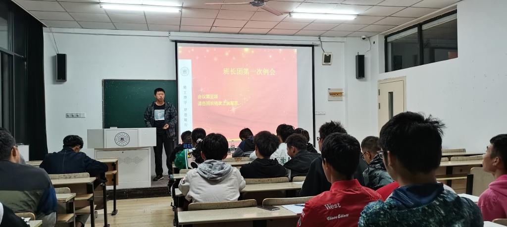 会议第二部分是2020级“班长团”第一次例会。2020级班长依次上台发言,对各班开学第一个月的情况进行总结。听完所有班长汇报后,费白露分学习,生活,工作三方面对各班管理上出现的难题进行详细解答,提供了一些具体可行的方法供班长团学习。班长团团长陈旭康对班长团的考核制度进行介绍,对活动策划书的书写进行详细教学,要求各班重视对班风、学风的培养,注重提升班级凝聚力。最后,汪辉对会议进行总结,并宣布2020级“班长团”启动仪式暨班长团第一次会议圆满结束。