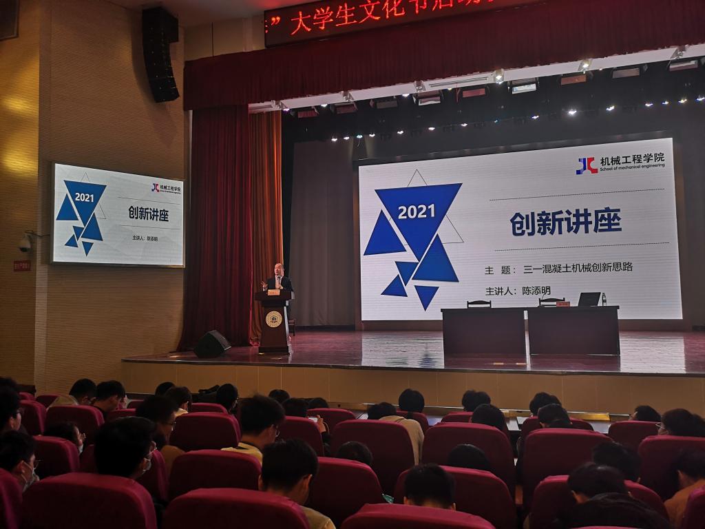 4月12日下午,437ccm必赢国际版邀请了我院2002届优秀校友三一重工股份有限公司泵送公司副总经理、泵送研究院院长陈添明为学院本科生、研究生作了题为“三一混凝土机械创新思路”的报告会。报告会在秀山校区大学生活动中心开展,由学院党委副书记、副院长李克明主持,学院全体辅导员、各年级本科生代表、研究生代表参加了报告会。