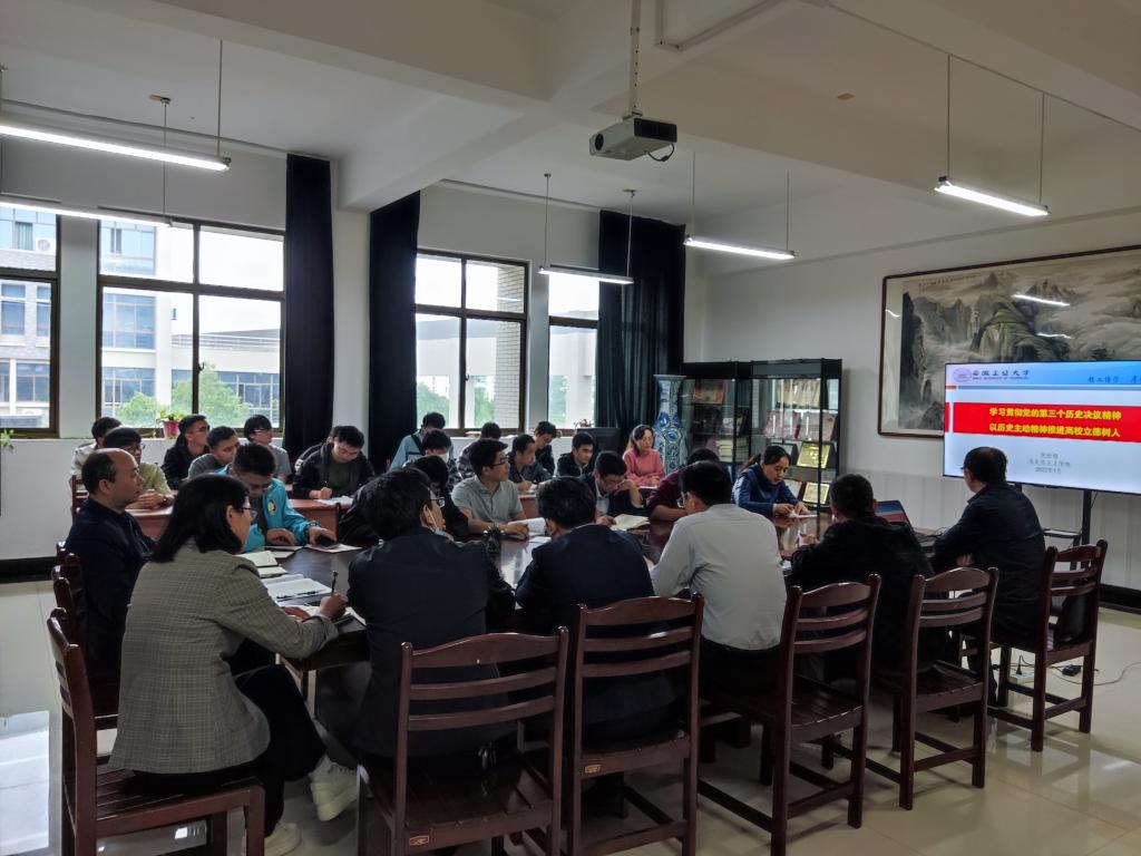 为深入学习贯彻中国共产党第十九届中央委员会第六次全体会议精神,全面、准确、深刻学习领会《中共中央关于党的百年奋斗重大成就和历史经验的决议》的精神实质,5月10日下午,437ccm必赢国际版邀请校党委讲师团成员、马克思主义学院倪松根副教授来学院开展了一场主题为《学习贯彻党的第三个历史决议精神 以历史主动精神推进高校立德树人》的专题报告。学院党委委员、纪委委员、师生党支部支委委员在机械楼302进行了学习,专题报告会由学院党委书记徐柳根主持。