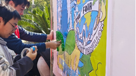 本次活动号召同学们树立节水意识,在生活中养成珍惜水资源,不丢半瓶水的良好习惯,积极践行“空瓶行动”。本次活动设置“瓶盖创意展板”环节,在校园显眼处设置展板,利用支部成员提前收集的废弃瓶盖粘贴出创意图案,生动直观地向师生传递环保与节约理念。随后,支部成员深入学生公寓的水房和洗手间,张贴了一系列精心设计的节水小贴士,从日常洗漱、洗衣到饮用水的节约方法,涵盖了生活中的点滴细节,引导同学们从每个细节做起,将绿色环保理念融入日常。