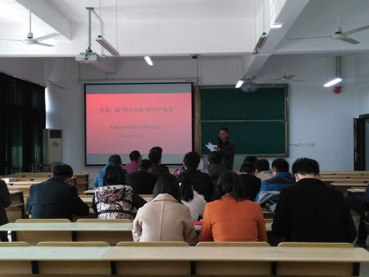 11月23日中午,437ccm必赢国际版学硕党支部在机械楼405教室集中上做“四个合格”的共产党员的主题党课。党课由该党支部书记杨龙主讲。