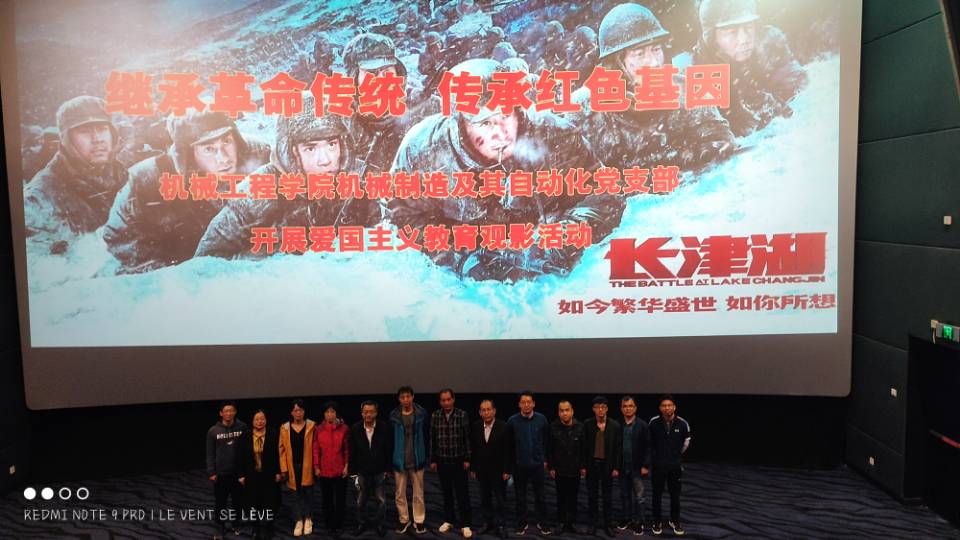 为持续深入开展党史学习教育,进一步激发广大党员教师爱党爱国热情,10月16日下午,437ccm必赢国际版机械制造及其自动化党支部举办“观看爱国电影,传承红色基因”主题观影活动,组织支部党员集体观看红色电影《长津湖》。