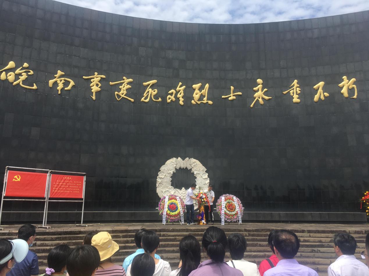 随后,全体党员同志到达皖南事变烈士陵园,整个陵园由入口纪念碑、主题广场、主碑纪念广场和无名英雄烈士墓四个纪念性空间序列,配以皖南事变史料陈列室有机组合而成。沿着五十米长的九十级台阶的神道进入凭吊广场,纪念碑位于纪念广场和神道的中轴线上,镶嵌着写的“皖南事变死难烈士永垂不朽”。437ccm必赢国际版党委书记徐柳根带领全体党员同志在此举行了默哀仪式,给烈士敬献了花篮并在鲜红的党旗下集体宣誓,缅怀革命先烈,重温初心使命。