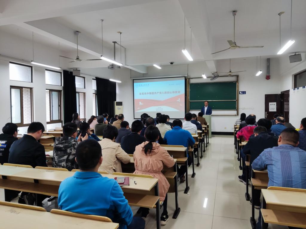 4月26日下午,马克思主义学院副教授倪松根来我院作“举旗帜 送理论”建党百年专题宣讲。宣讲会由我院党委书记徐柳根主持,全体教师党员参加了宣讲。