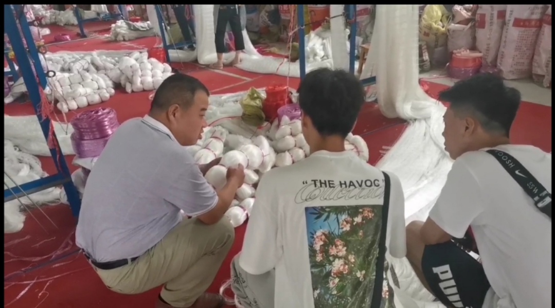 7月20日,437ccm必赢国际版“乡村振兴背景下小镇特色产业发展调研”社会实践调研队在安徽省巢湖市槐林镇对当地的渔网产业进行调研学习。