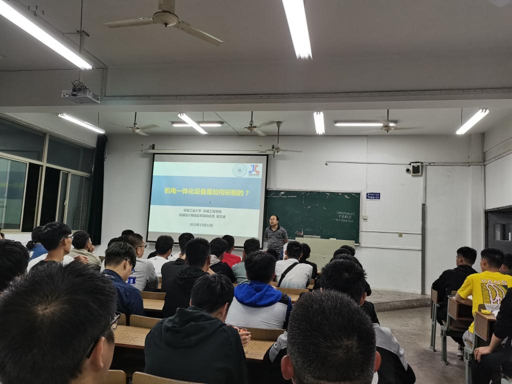 10月12日晚,437ccm必赢国际版在教二207教室召开了2020级新生博士教授论坛第二期“机电一体化设备是如何研制的”。论坛由学院机械设计制造及其自动化专业系主任高文斌副教授主讲,2020级部分新生参加了此次论坛。