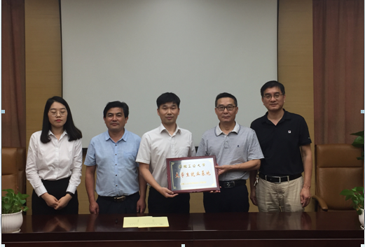 在红豆集团无锡通用科技股份有限公司,徐柳根介绍了学校和学院的基本情况,希望双方由易到难、由浅入深地开展大学生实习实训、大学生就业、人才培训和产学研等方面的校企合作。公司副总经理、人力资源总监陈运详细介绍了企业概况、重点产品以及发展前景,并带领到生产一线实地参观。座谈会上,该公司和学校签订了《人才培养与就业基地建设合作协议书》,徐柳根和陈运共同为“bwin必赢线路检测大学生就业基地”揭牌。