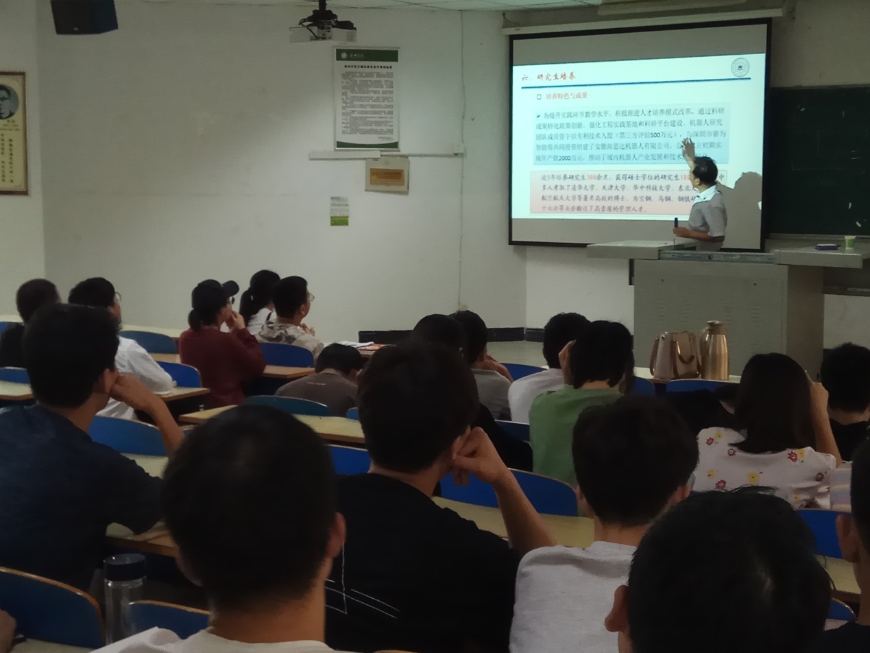 首先与机械与电气工程学院林院长、王院长进行交流,互相介绍本院研究生报考及招生情况。随后张兴权导师从学校简介、学院介绍、学院学科特色、导师队伍、科研平台、研究生培养等方面给学生展开详细介绍。研究生秘书高培青结合学院近两年研究生报名、面试、录取情况给学生做了分析,从研究生新生奖和学业奖等方面进一步宣传了报考我校的优惠政策。最后与学生互动,宣传组老师对学生所提问题一一解答。