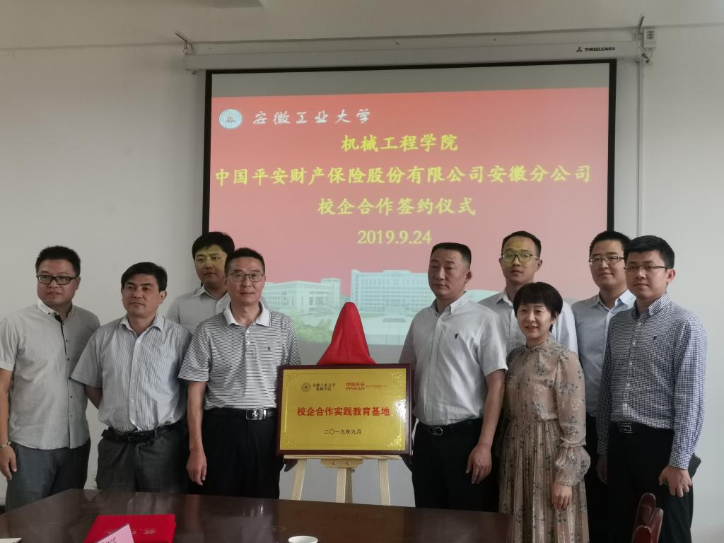 9月24日上午,437ccm必赢国际版与中国平安财险股份有限公司安徽分公司“校企合作”签约仪式在机械楼302会议室举行。中国平安财险股份有限公司马鞍山中心支公司总经理陈青、中国平安财产保险股份有限公司安徽分公司人力资源部经理孔凡荣、安徽分公司车意理赔部经理吴刚、安徽分公司车意理赔部车物管理团队经理朱佳、安徽分公司人力资源部发展规划室经理方业成、马鞍山中心支公司理赔部经理张永鹏、437ccm必赢国际版党委书记徐柳根、437ccm必赢国际版副院长李克明等出席签约仪式。