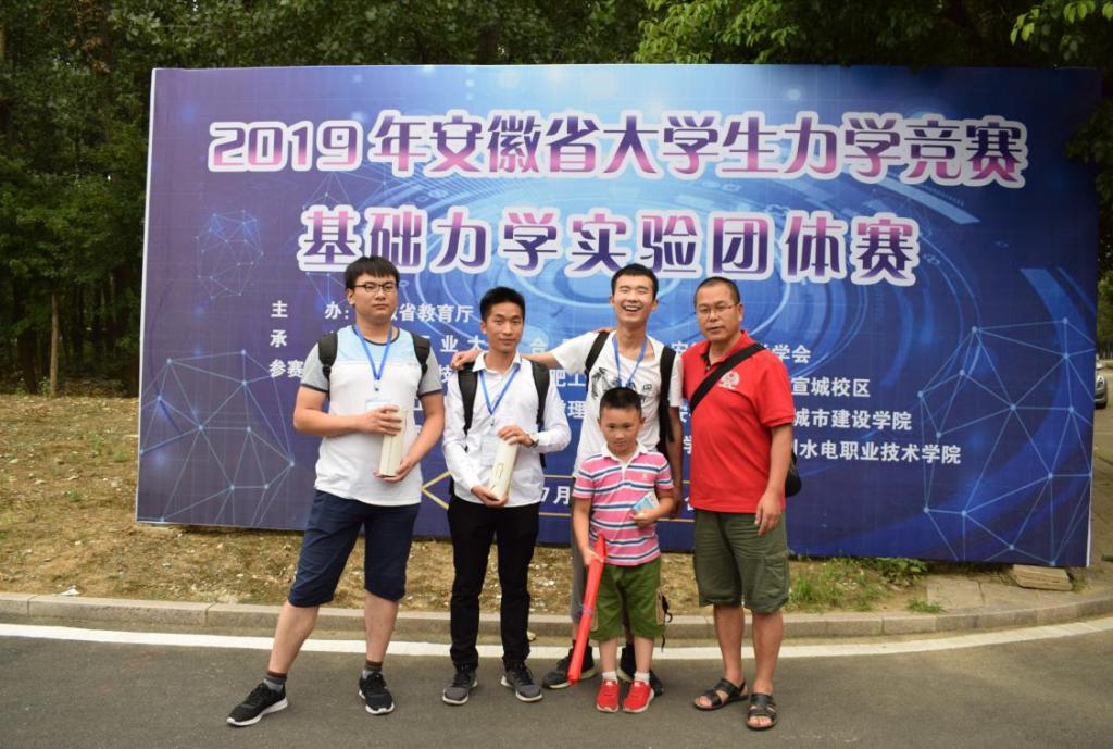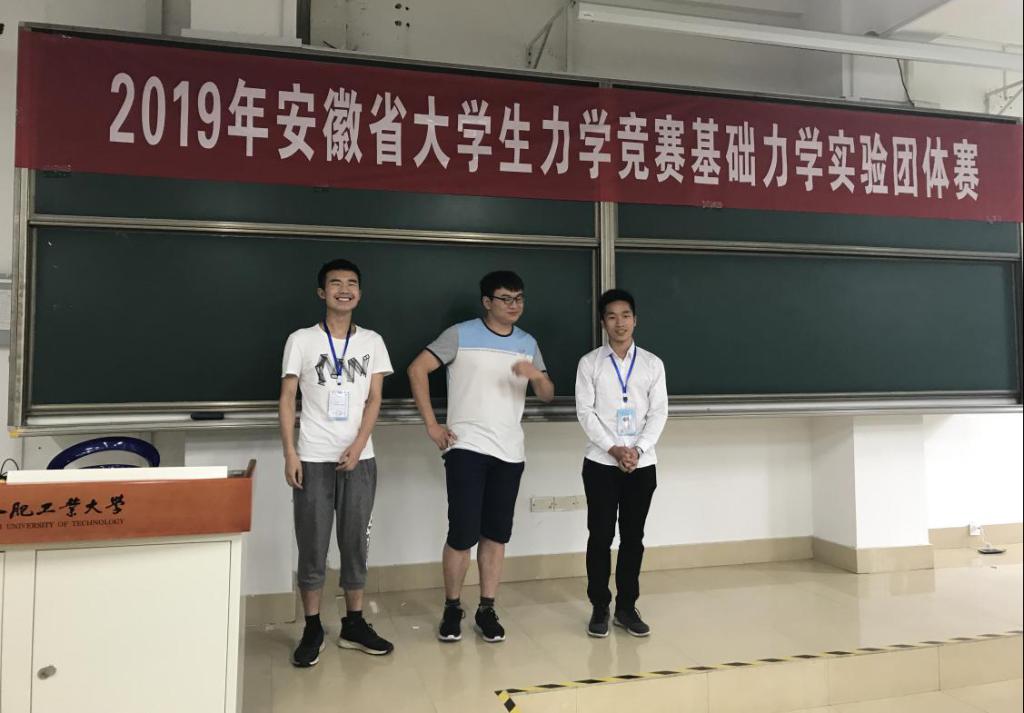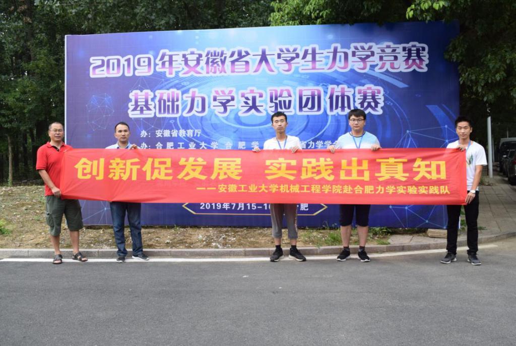 7月15日至16日,“2019年安徽省大学生力学竞赛基础力学实验团体赛”在合肥工业大学如期举行。由437ccm必赢国际版的李程、周冉、夏昌荣三位同学组成的我校代表队,在与中国科学技术大学代表队等强队的同场竞技中,表现优异,勇夺第一名,荣获唯一的特等奖,实现了历史性突破。我校代表队无论从测试方案设计和实施,还是答辩等环节,无不展现出了安工大学子的独特风采,出色地完成规定的工程测试任务。我校指导教师黄志来和王彪荣获优秀指导教师奖。