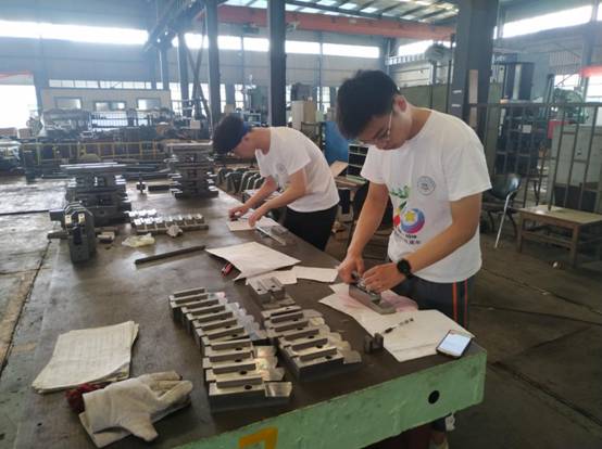 近期,我院学子走进双益机械制造有限公司开展“百炼成钢,实践成才”暑期社会实践活动,实践队根据队员的自主意愿,分成了生产组、工艺组、采购组、品质组,明确分工,各司其职。