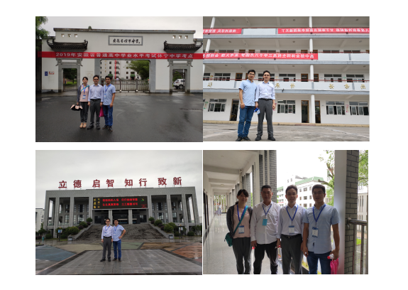 为获取优质生源,宣传我校办学实力、专业特色和相关招录政策,2019年06月21-24日,我院单建华教授、胡文锋老师和周环老师三人组成的黄山市招生宣传工作组赴黄山市各区县,拜访了休宁中学、屯溪一中、歙县中学和歙县二中四所省示范高中以及地区办学实力最强的私立中学歙州学校。