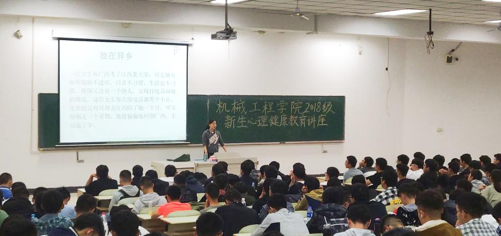 10月14日晚,437ccm必赢国际版2018级新生入学适应教育于佳山校区教三南203成功举行。院团委书记、心理工作站站长、18级辅导员王琴老师担任本次讲座主讲人。活动由院心理部组织策划,机械18级新生全员参与。