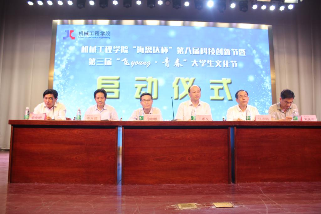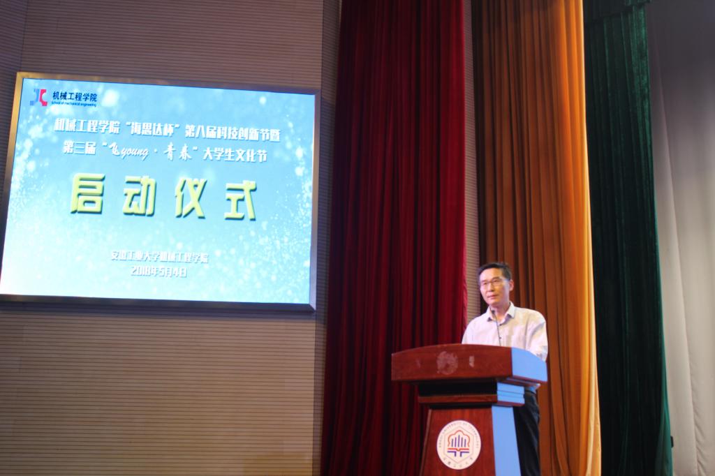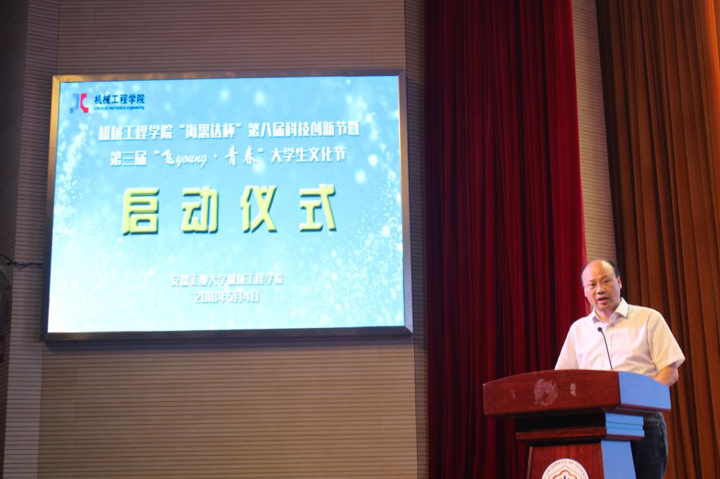 为了繁荣学院科技文化,培养广大学生的科技创新精神和实践动手能力,营造有利于学生健康成长的校园科学文化氛围,5月4日,437ccm必赢国际版“海思达杯”第八届大学生科技创新节暨第三届“飞young·青春“大学生文化节启动仪式在秀山校区新大学生活动中心正式举办。本次活动由院党委副书记、副院长李克明负责主持,出席活动的嘉宾有院党委书记徐柳根,院长王孝义,海思达机器人有限公司总经理李友顺,副院长汪永明、副院长刘庆运。