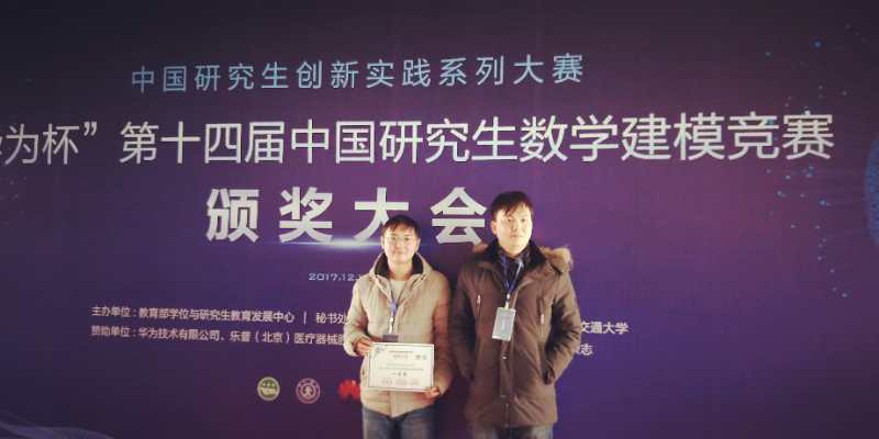 2017年12月16日,“华为杯”第十四届中国研究生数学建模竞赛颁奖大会在西安交通大学隆重举行。我校参赛队伍在本次比赛中荣获全国一等奖1项,二等奖1项,是有史以来获奖成绩最好的一次,实现了全国获奖零的突破。全国一等奖参赛队指导教师——我院汪超老师和参赛队长2016级机械工程专业硕士研究生舒军勇同学参加了颁奖大会。