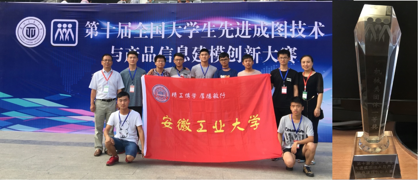 我校机械类团队王佳、朱瑞、华鑫斌、王琼、潘航五位同学首次荣获机械类团体一等奖;3D打印团体一等奖;王佳、朱瑞分别获得个人全能一等奖;王琼、华鑫斌、于阳分别获得个人全能二等奖和尺规绘图一等奖;周孟洋、潘航分别获得尺规绘图一等奖;吕彪强、刘正扬分别获得尺规绘图二等奖。建筑类团队周紫云等九位同学荣获建筑类团体二等奖,个人全能二等奖5项,尺规绘图一等奖5项、二等奖9项,三维建模二等奖一项。