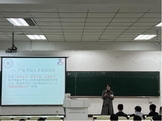 会议伊始,叶晔老师简单介绍了机器人工程专业的建设历程和发展成果。接着,叶晔老师详细阐述了机器人工程专业的两个方向(机器人方向和智能制造方向)的异同点,全面分析了两个方向的培养目标、课程设置和实习安排。此外,叶晔老师还针对马鞍山市政府提供给产业学院机器人专业(智能制造方向)学生的优惠政策进行了解读。最后,针对同学们的一些疑问和顾虑,叶晔老师现场做出了解答。
