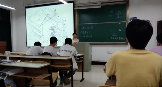 本次示范课主讲老师李碧研围绕《建筑CAD》中的“建筑施工图”开展示范教学,讲述了施工图产生、分类、组成以及建筑施工图读图、画图注意事项和规律规定等。由房屋的组成引入我国无数雄伟的古建筑,这些古建筑,以它独特的风格和历史意义,在世界建筑史上占有重要地位,是中华文化5000年辉煌的历史中的璀璨珠宝之一。她教育学生爱国不是一句口号,是要从欣赏、追寻历史文化中被潜移默化。在讲授规定画法和设计规范时,她引用学生在作图、读图时,要做到大道至简,依据标准、遵循规范,复杂的问题简单化。