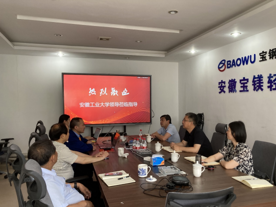 6月16日,机械工程学院党委副书记、纪委书记、副院长李克明一行赴安徽宝镁轻合金有限公司开展产学研合作调研暨访企拓岗促就业专项行动。青阳县的县委常委、县委副书记、人大常委会主任杨晓兵、安徽宝镁总经理丁守君、人力资源部部长童林红等参加座谈会。