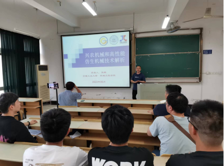 张鹏老师通过深入调研了国内外现有兴农机械以及仿生青蛙、仿生蝴蝶的基础上,结合大赛主题要求,通过许多具体实例对大赛主题和内容进行了详细解读,并对大赛作品选题、设计和制作中应注重的方向和容易出现的问题进行详细的讲述。