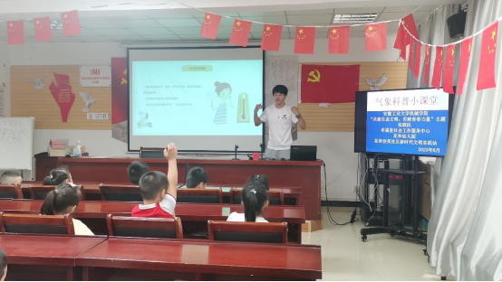 6月25日,437ccm必赢国际版“共建生态文明,贡献青春力量”实践队赴花和佳苑社区党群服务中心开展了科普宣讲活动,向花和幼儿园的小朋友们宣传气象科普知识,增强孩子们的安全意识。高温、暴雨、雷电天气中,如何保护自己才能避免险情,主讲人运用动画视频,形象生动的向小朋友们介绍了各类气象知识。互动环节中,孩子们积极回答实践队员提出的问题,主动表达自己对相关气象知识的理解,场面十分融洽。
