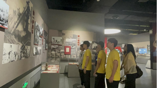图为实践队通过图片资料了解马钢发展历程。