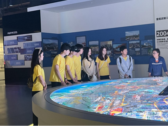 图为实践队倾听工作人员解说马钢发展成就。