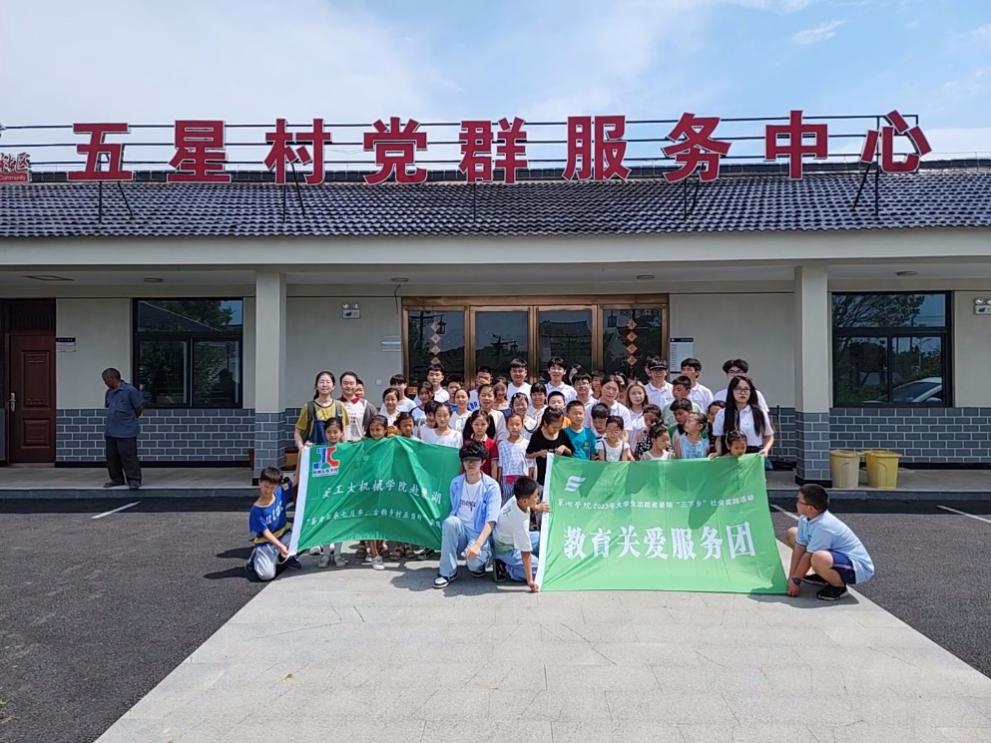 图为实践队员与五星村星火教育关爱服务团合影留念
