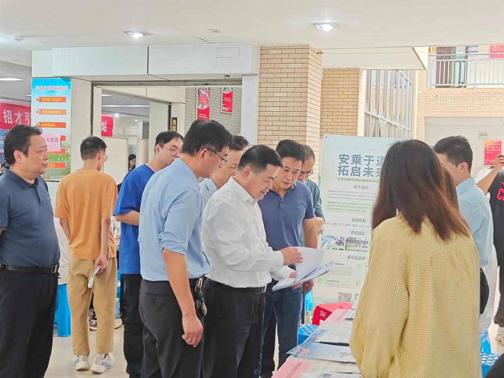 陆林指出,大学生就业工作是事关人才培养质量和学生未来发展的民生工程,学校不仅要在毕业季集中发力,更要以系统、长远的眼光作好谋划,完善就业链条、健全长效机制、汇聚多方力量,共同推动我校大学生就业工作高质量发展。招聘会上,陆林与企业招聘人员广泛交流,了解企业发展情况、招聘需求以及现场大学生应聘情况。陆林鼓励应届毕业生要结合专业特点和职业规划主动与用人单位沟通,积极求职,高质量就业,并对学院组织宣传工作给予肯定,对招聘效果给予高度认可。