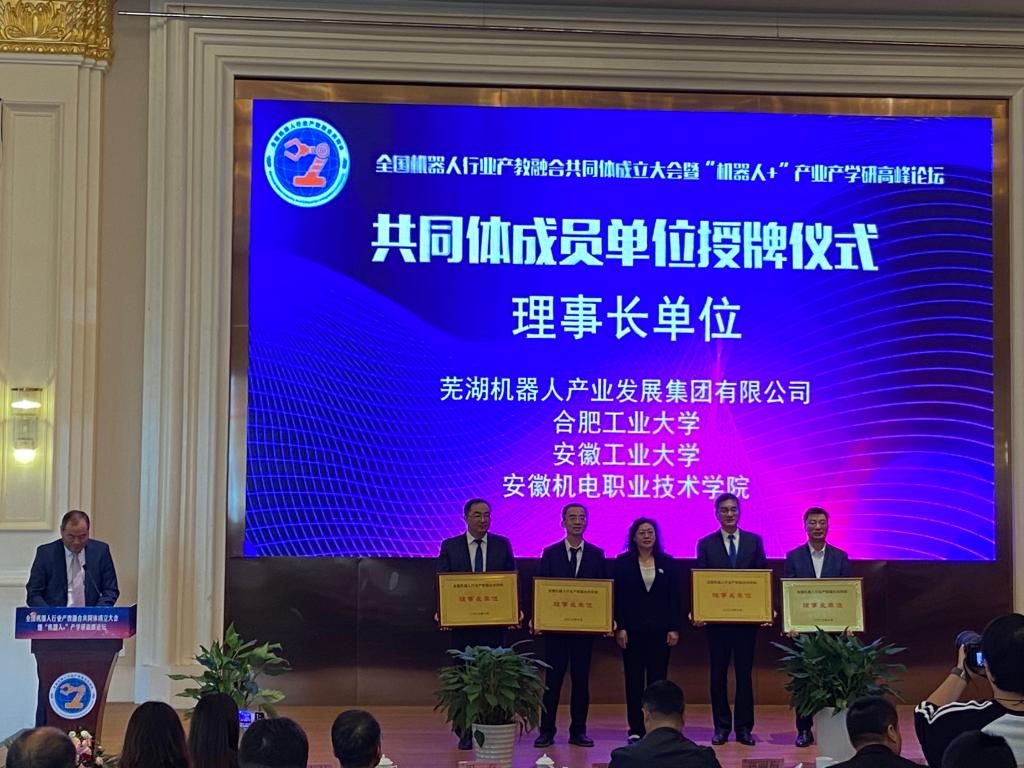 我校作为牵头单位共同启动成立“全国机器人行业产教融合共同体”,共同体成员单位有理事长单位4家、常务副理事长单位4家、副理事长单位26家和理事单位48家,我校被授予全国机器人行业产教融合共同体理事长单位。