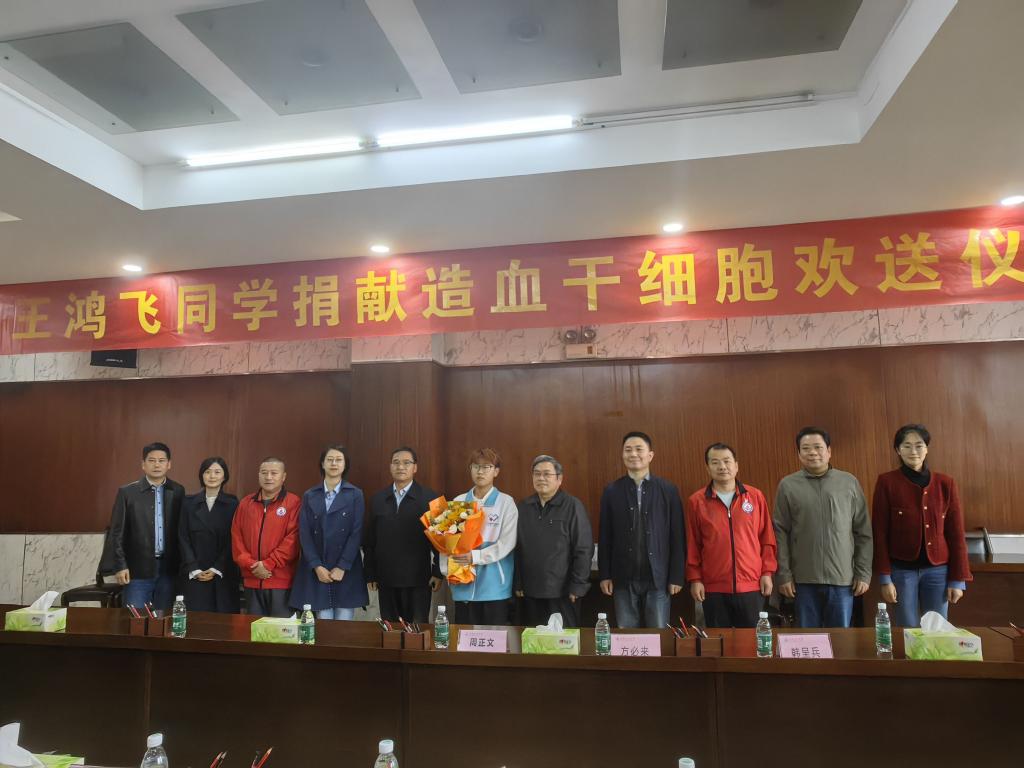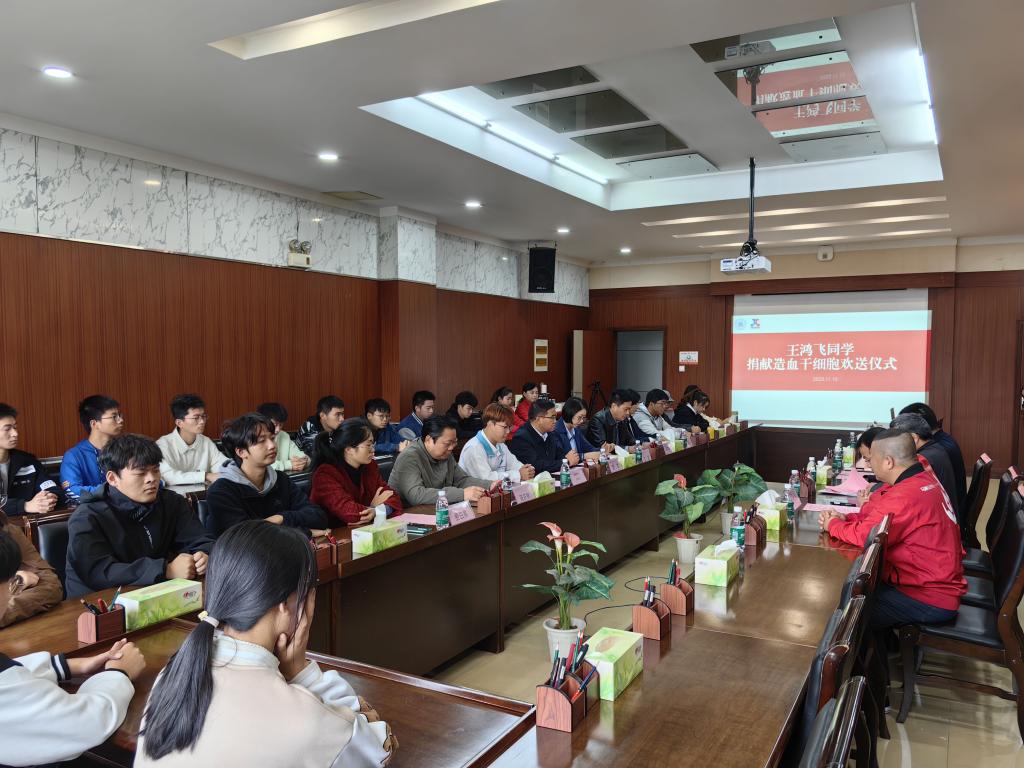 11月10日上午,学校在佳山校区学术会议中心第四会议室举行了一场特殊的欢送会,欢送437ccm必赢国际版2022级机械设计制造及其自动化专业王鸿飞同学赴芜湖市捐献造血干细胞。马鞍山市红十字会、市中心血站、市红十字无偿献血志愿者协会负责人,校党委宣传部、学生工作部、团委及437ccm必赢国际版相关负责人,师生代表和媒体记者出席了欢送仪式。