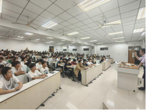 讲座以“今天你喝水了吗?喝的什么水?”、“用什么喝的水?”、“发现什么问题了没?”三个问题为切入点,引导同学们思考生活中的创新。之后通过思考题、生活中的创新案例等,说明人们从不断的试错中找到解决问题的办法。随后,杨老师结合大一学生的身份,告知大家当下如何做,通过介绍往年优秀学子取得的创新创业成绩,引导大家向榜样学习看齐,汲取奋斗力量。同时,结合大学生创新创业项目、大学生工程实践与创新能力大赛、大学生机械创新设计大赛等,详细介绍了相关申报信息与比赛信息,分享了自己的竞赛指导计划,推荐了查找资料的途径,针对大学不同阶段向同学们提出了具体的创新创业建议,教育同学们夯实专业基础、加强专业实践、提升综合素质,激励同学们敢于创新、勇于实践、善于突破、落于行动。