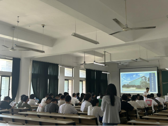 会上,公司招聘负责人介绍了公司发展历程、企业文化、企业人才培养模式以及薪资待遇。此次暑期实习有两个工作地点,分别在芜湖和苏州。公司招聘负责人让学生结合自身意愿进行简历投递,暑期表现好的学生毕业后公司会直接留用。