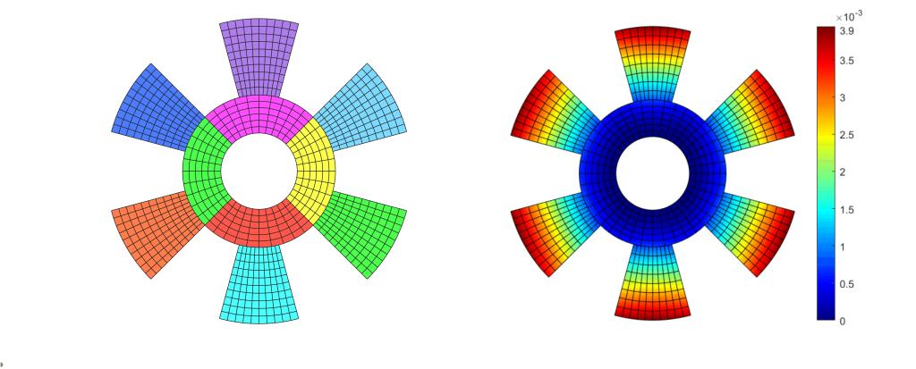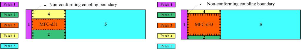 分布式压电智能结构广泛应用于航空航天飞行器壁板的形状控制、减振降噪和健康监测,复杂的服役环境以及材料的多物理场耦合特性给结构的计算带来了严峻的挑战。传统单片等几何分析(IGA)方法控制点的非插值性使其无法精确分析分布式压电智能结构。本研究提出了一种基于Nitsche方法的多片等几何分析方法,将结构划分为多个子域,并采用Nitsche方法耦合相邻子域、确保耦合边界的位移连续性,在减少冗余控制点产生的同时提高了构建、分析复杂几何模型的能力,最终实现了多种复杂分布式压电智能结构的高精度分析。相关研究成果发表在《Thin-Walled Structures》,我校为论文第一单位,437ccm必赢国际版刘涛高级实验师为第一作者,刘庆运教授与越南维新大学Bui Tinh Quoc教授为共同通讯作者,郑近德教授与王璐教授为合作作者,硕士研究生孙祥荣和刘志豪等为课题的顺利完成做出了积极贡献。