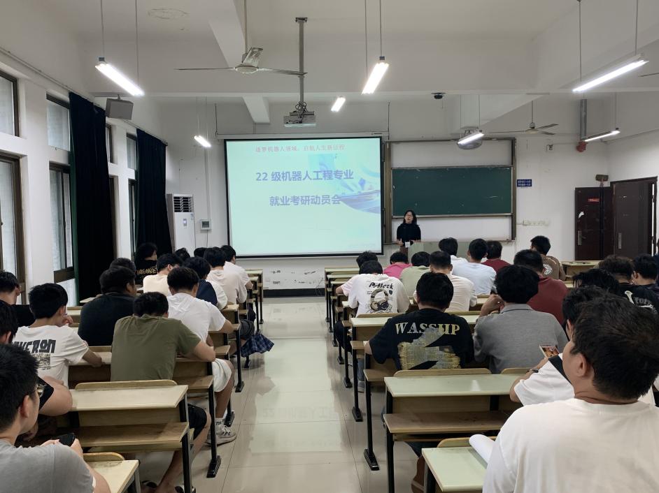 9月29日下午,2022级机器人工程专业毕业生考研与就业动员会在机械楼405教室召开。机器人工程专业系主任叶晔、副主任袁晖以及2022级毕业生参加会议。