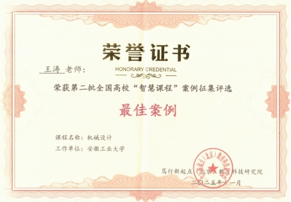 11月15日至16日,由湖北省高等教育学会指导,笃行新起点(北京)教育科技研究院主办的“第四届高校智慧教育与教学创新成果交流会”在武汉成功举办。我院教师代表王涛受邀参会,其申报的《机械设计》智慧课程建设案例在大会同期举办的第二批全国高校“智慧课程”案例征集评选中脱颖而出,荣获“最佳案例”。