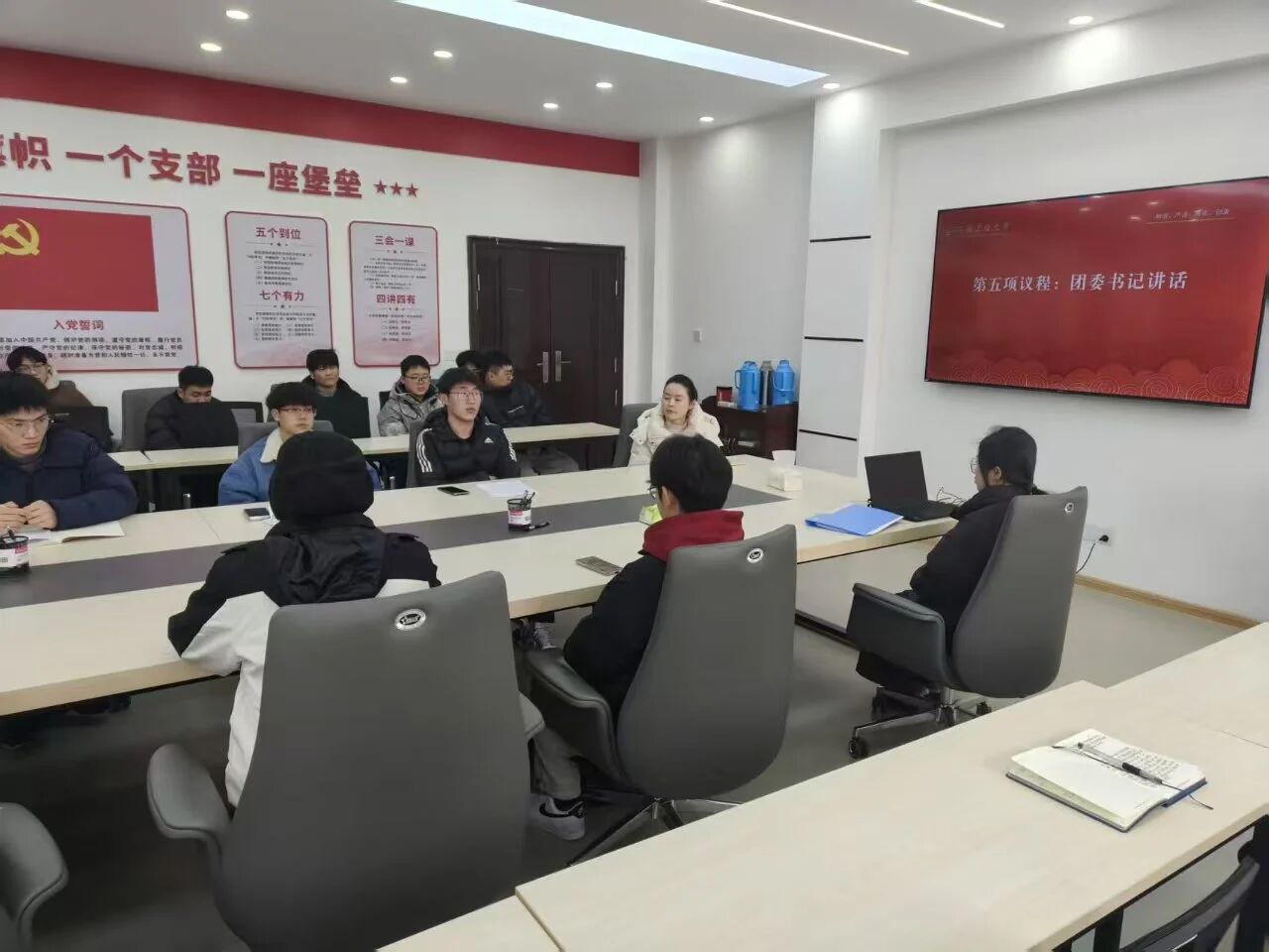 会议严格按照既定议程有序开展,首先进行集中学习环节,团员们共同研学习近平新时代中国特色社会主义思想、党的二十届四中全会精神,同步领读跟读《中国共产主义青年团章程》第七章团的纪律内容,筑牢思想根基,明确纪律底线。随后,团支部委员会报告全年工作,从思想引领、组织建设、实践活动三方面总结成效,直面学习形式单一、活动覆盖面不足等四项问题,并明确整改方向。