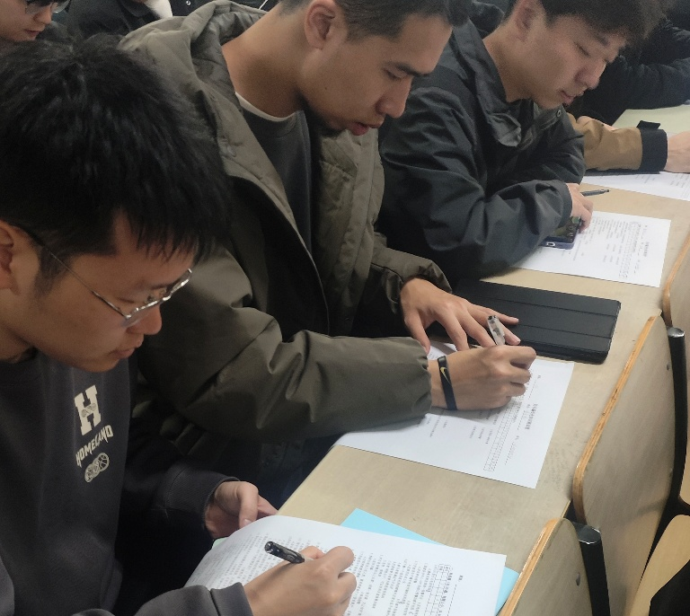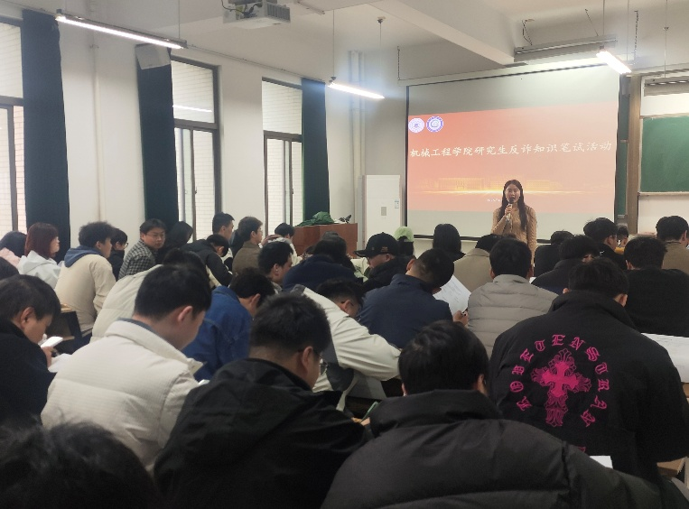 随后,辅导员王丹丹针对反诈、交通安全、宿舍安全等内容进行讲解,通报近期学院研究生被骗案例,剖析各类骗局的常见形式;重申校园内禁止违规骑行电动车,注意交通出行安全;强调严禁使用大功率电器、私拉乱接电线,杜绝宿舍安全隐患。为进一步强化反诈防范意识,组织研究生开展反诈知识笔试,通过发放试卷、现场作答的形式,检验研究生反诈知识的掌握水平。
