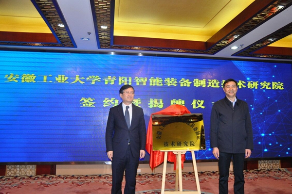 4月20日,bwin必赢线路检测青阳智能装备制造技术研究院签约暨揭牌仪式在青阳县举行。校长魏先文,副校长水恒福,池州市委常委、市委组织部部长、统战部部长张杰华,青阳县委书记、县长巩文生出席仪式。我校科研处、437ccm必赢国际版等部门负责人以及池州市、青阳县相关部门负责人、重点企业代表参加仪式。