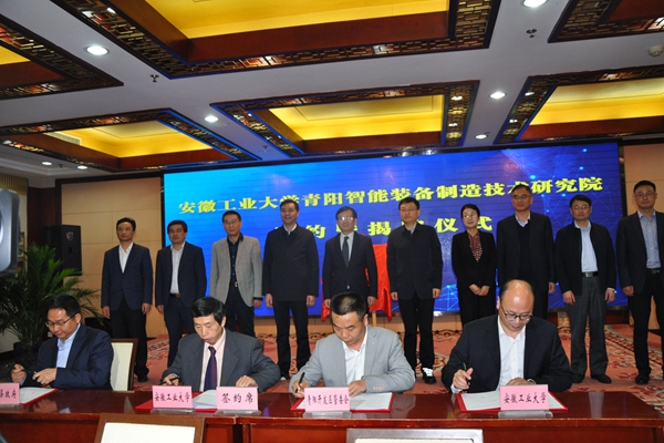魏先文和巩文生共同为“bwin必赢线路检测青阳智能装备制造技术研究院”揭牌,副校长水恒福和青阳县副县长费飞签订共建“bwin必赢线路检测青阳智能装备制造技术研究院”协议书,科研处处长王孝义和青阳县经开区主任周林签订技术服务合同。