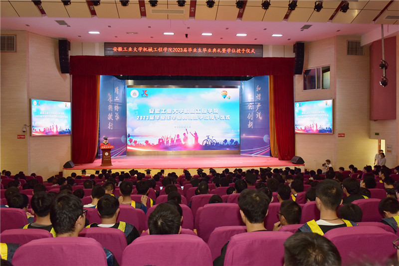 魏先文代表学校向圆满完成学业的毕业生表示祝贺,对437ccm必赢国际版2023届毕业生在思想引领、争先创优、科技创新等方面取得的优异成绩表示肯定。他以“踔厉奋发展风采,笃行不怠向未来”为题,寄语全体毕业生要以担当践行使命,争做“眼里有光”的开拓者。将自己的职业理想、学业理想和人生目标,同祖国的前途、民族的命运紧密联系在一起,主动担苦、担难、担重、担险,将安工大人的家国情怀和历史担当,浓墨重彩地写进中国式现代化的壮丽篇章;要以吃苦成就事业,争做“肩上有责”的奋斗者。学会运用习近平新时代中国特色社会主义思想的世界观和方法论,深刻领会“六个必须坚持”,精于工、匠于心、品于行,在立足本职的创新创造中不断积累经验、取得成果,成长为一专多能的复合型人才;要以感恩回馈社会,做“心中有爱”的奉献者。树牢正确的世界观、人生观和价值观,践行社会主义核心价值观,坚守道德底线和法纪红线,清白做人、干净做事,摆正个人与团队的关系,对单位和家庭尽责,心系母校、奉献国家。