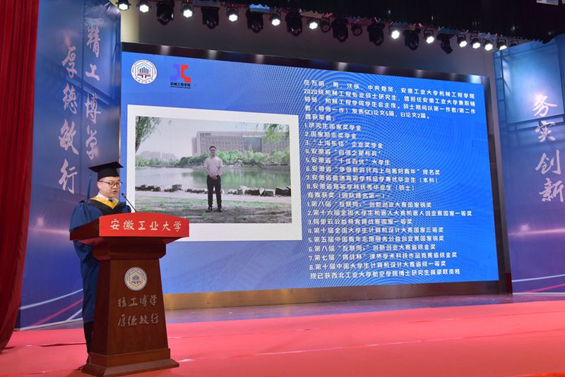 毕业典礼在庄严的国歌声中拉开帷幕。437ccm必赢国际版党委书记徐柳根宣读了2023年安徽省普通高等学校优秀毕业生、校优秀毕业生、校友联络员名单。