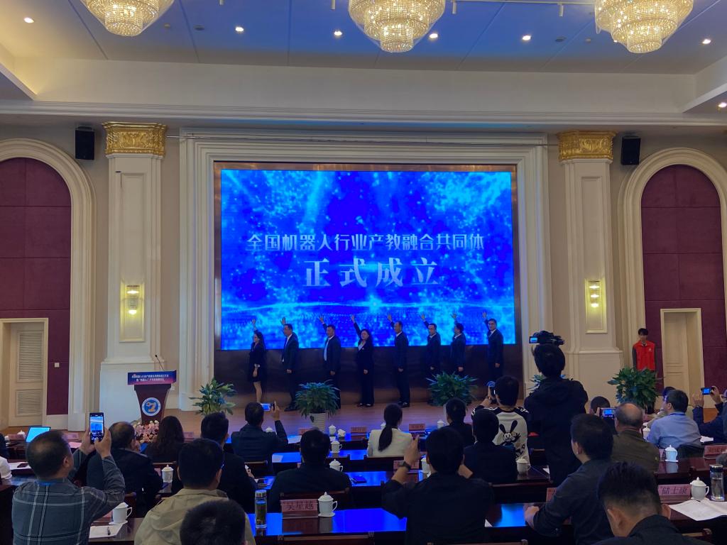 我校作为牵头单位共同启动成立“全国机器人行业产教融合共同体”,共同体成员单位有理事长单位4家、常务副理事长单位4家、副理事长单位26家和理事单位48家,我校被授予全国机器人行业产教融合共同体理事长单位。