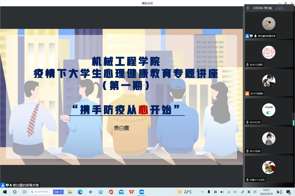 鉴于国内疫情形势,学校采取封闭式管理已超过一个月,在此期间,为做好疫情防控常态化下全院学生的心理健康教育与危机预防工作,提升学生的心理调适能力,437ccm必赢国际版通过线上问卷的方式对全院学生的心理健康状况进行了调研,分析调研数据后,针对学生群体表达出的各种困扰,学院开展了大学生心理健康教育系列线上讲座。