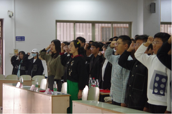 10月23日中午,437ccm必赢国际版2022级新生团员“重温誓词”仪式于佳山校区教三南103教室举行。院团委书记费白露、2022级辅导员濮莹萍、院团委副书记于永麟出席此次活动,仪式由院组织部干事王启明主持。